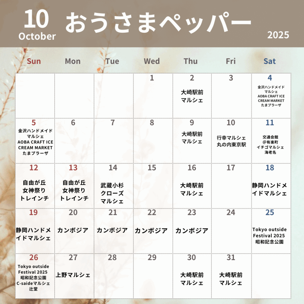 10月も様々な場所でたくさんのお客様にお会いできる事を楽しみにしています。